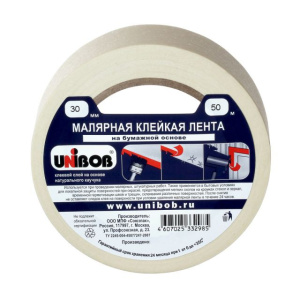 Клейкая лента малярная 30 х 50м белая (инд.упак.) /60шт*кор/ UNIBOB К28136