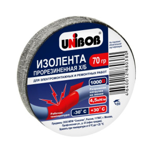 Лента электроизоляционная прорезиненная(х/б) черная 70гр. UNIBOB /150шт*кор/ К57729