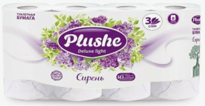 Туалетная бумага 3-х сл. "Plushe "Deluxe ЛАЙТ сирень /по 15м /8рул*пач х 8пач*уп/11952