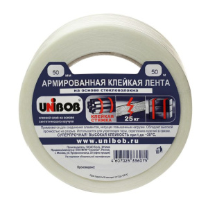 Клейкая лента армированная стекловолокном 50 х 50м (инд. упак.) /18шт*кор/ UNIBOB К42070