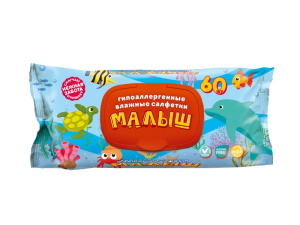 Влажные салфетки 60шт МАЛЫШ рыбки/с клапаном/16 шт*кор/МЛ-61К