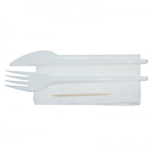 Набор столовых приборов 4 (вилка165, нож 165, зубочистка, салф 24*24) /30шт*уп/300шт*кор// ПОС45271