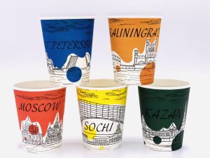Стакан бумаж. 250мл Города АССОРТИ 5 видов (50 /1000шт/кор) ЛигаПак d=79/80мм