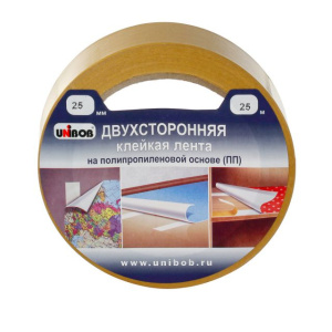 Клейкая лента двухсторонняя 25 х 25м полипропилен (инд.упак.) /72шт*кор/ UNIBOB К38916