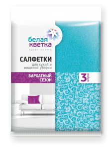 Салфетки для уборки Вискоза "Белая Кветка"Бархатный сезон" /3шт*уп /34см*34см/50уп*кор/0301