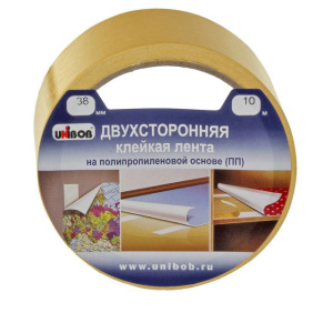 Клейкая лента двухсторонняя 38 х 10м полипропилен (ин.упак.) /48шт*кор/ UNIBOB К38566
