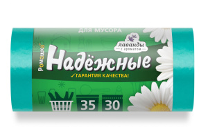 Мешок для мусора 35л. /50*57см 12мкм/ "НАДЕЖНЫЕ" Зелёный с Ушками ПСД(30шт.х 20 рул*кор)/ВЛ-038-30