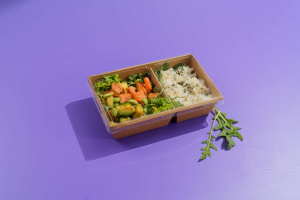 1ЕА Контейнер картонный 800DBмл/b Крафт 2-х секц /120х200х55/ (50шт/300 шт*кор) / кр 26670