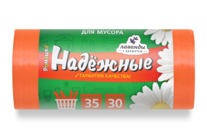 Мешок для мусора 35л. /50*57см 12мкм/ "НАДЕЖНЫЕ" Оранж. с Ушками ПСД (30шт.х 20 рул*кор)/ВЛ-036-30