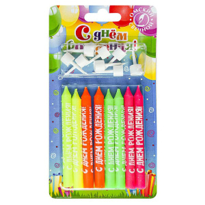 Свечи тортовые с подставками "С днем рождения" микс 8шт/30уп/0139/