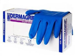 Перчатки латексные особопроч. голубые DERMAGRIP S (10кор/25пар)/16гр/ НДС 10 %