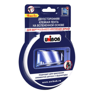 Клейкая лента двухсторонняя 19 х 5м белый (Инд уп)/ для крепления зеркал 28шт*кор/ UNIBOB К 54928