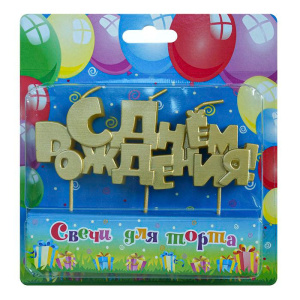Свечи для торта на шпажках "С днем рождения" золотая /10 шт в кор/1955