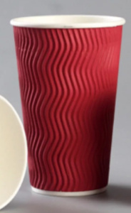 Стакан бумаж. 400мл 3-х сл. Красный/Волна гофр. Complement для гор/нап(50 шт500шт*кор)d=90 мм