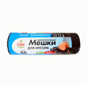 Мешок для мусора 60л. /60*80см 25мкм/ "Лига" с УШКАМИ ПВД (20шт.х 30 рул*кор) /10776/ 56