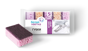 Губка кух. "Белая Кветка"Летний вечер" /90мм*60мм*35мм /5шт*пач/30 пач*уп/0201