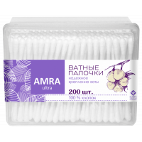 Ватные палочки прямоуг. коробка /1пак*200шт/ АМРА /24 пач*кор