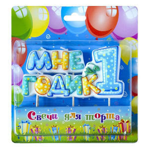 Свечи для торта на шпажках "Мне один годик" голубая /10 шт в кор/0270