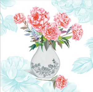 Салфетка 3-сл. 33*33 20л Bouquet Home Collection Classic Ваза с пионами /12пач*кор/25067
