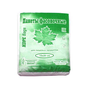 Пакет фасовоч. в пластах 15х20см (6мкм) "Кленовый лист 600" (зелёный) (1*20 пач.) Виапласт