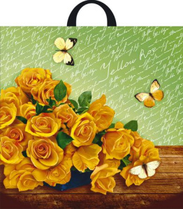 Пакет с петл.ручкой 44х44 (70) ПВД (Интерпак) Желтые розы /250/25