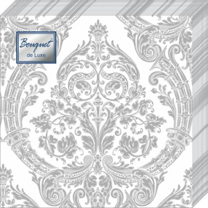 Салфетка 3-сл. 24*24 25л Bouquet de Luxe ROYAL(серебро) на белом /15пач*кор/37242