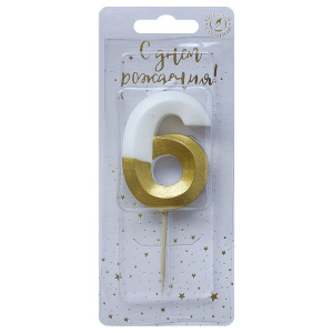 Свечи для торта Цифра "6" "Бело-золотые витые" /30 шт в кор/6506/