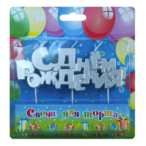 Свечи для торта на шпажках "С днем рождения" серебряная /10 шт в кор/1956