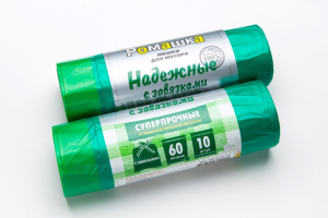 Мешок для мусора с завяз. ПСД "Надежные" 60л.(23мкм) Зеленый (10шт*рул._24рул.) /В3-6010-13/120 п