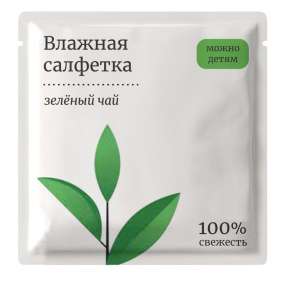 Влажные салфетки в инд. упаковке Освежающий аромат зелёный чай 6*6 /1500шт*кор