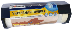 Пленка укрывная с малярной лентой2,7м х 20м + диспенсер /25шт/кор UNIBOB К 78981