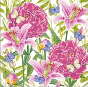 Салфетка 3-сл. 33*33 20л Bouquet Home Collection Classic Пионы и Лилии /12пач*кор/25005