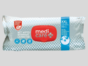 Влажные салфетки 80шт Medi care антибакт. с пантенолом/XXL полотенца/с клапаном/10 шт*кор/ПВМС