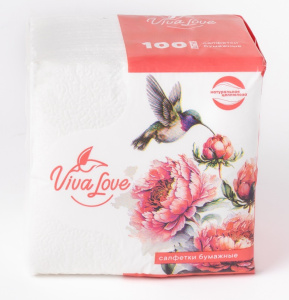 Салфетка 1-сл. 24х24 100 Viva Love Колибри белая /20 пач*уп