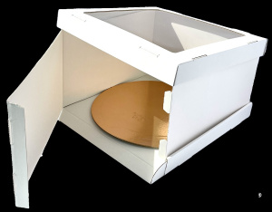 Короб картонный для Торта белый с окном квадратным STRONG (усиленный) 280*280*200мм /30шт.