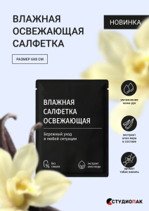 Влажные салфетки в инд. упаковке Освежающий аромат ваниль/лемонграсс/табак/ 6*8 Черная/1000шт*кор