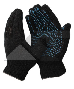 Перчатки ХБ / 5 нитные /7,5 класс/10пар/300 пар/ точка ПВХ/ Чёрные/ЛТ