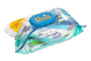 Влажные салфетки 120шт."Unis" КЛАПАН универсальные с экст.ромашки/12шт*кор/ 2/5/120-243
