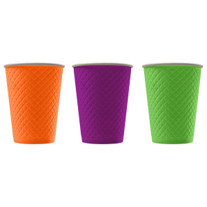 Стакан бумаж. 350мл 2-х сл. COLOR(Микс)Waffle рифлен.для г/нап.(300-350мл)(25шт/500шт)d=90 мм Форм