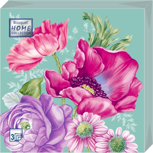 Салфетка 3-сл. 33*33 20л Bouquet Home Collection Classic Цветочная композиция на зеленом/12/25361