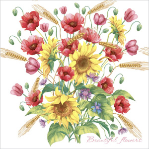 Салфетка 3-сл. 33*33 20л Bouquet Текстильный стиль Солнечный букет /12пач*кор/37402