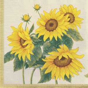 Салфетка 3-сл. 33*33 20л Bouquet Текстильный стиль Подсолнухи в золотой рамке /12пач*кор/25260