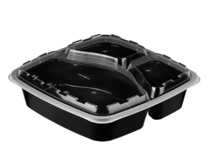 1263Ч 1400 мл Контейнер 3-х секцион/229x229х51 мм/ЧЕРНЫЙ с прозрачной кр./ВЗЛП/100 шт*кор