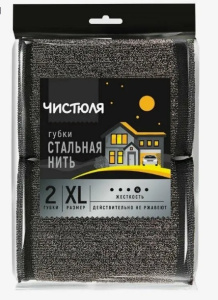 Губка кух. со стальной нитью ЧИСТЮЛЯ XL 2шт*пач/33шт*кор/ПП004