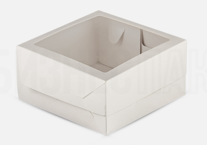 Короб картонный для Торта белый с окном 160*160*80мм (2пач/50шт/100шт) БЕНТО-ТОРТ